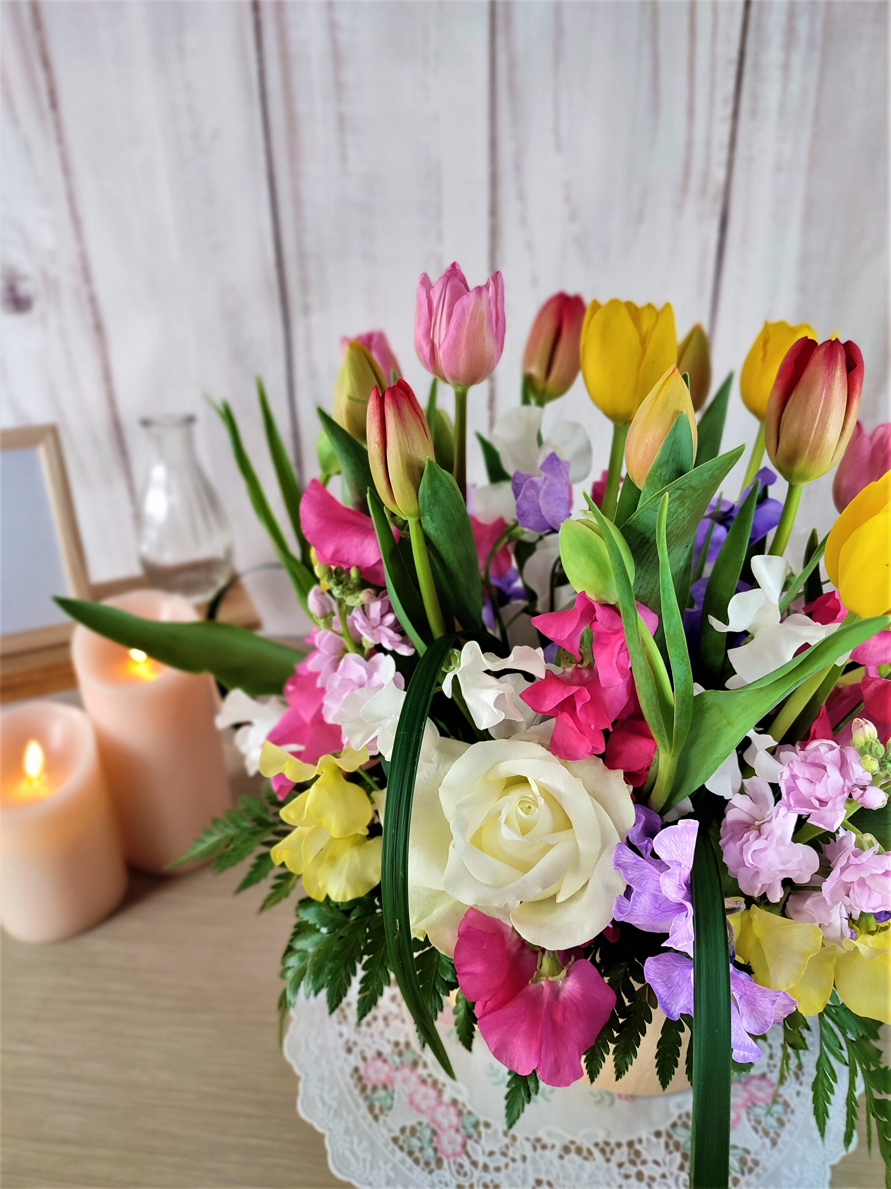 【春限定】チューリップとスイートピーのアレンジメント