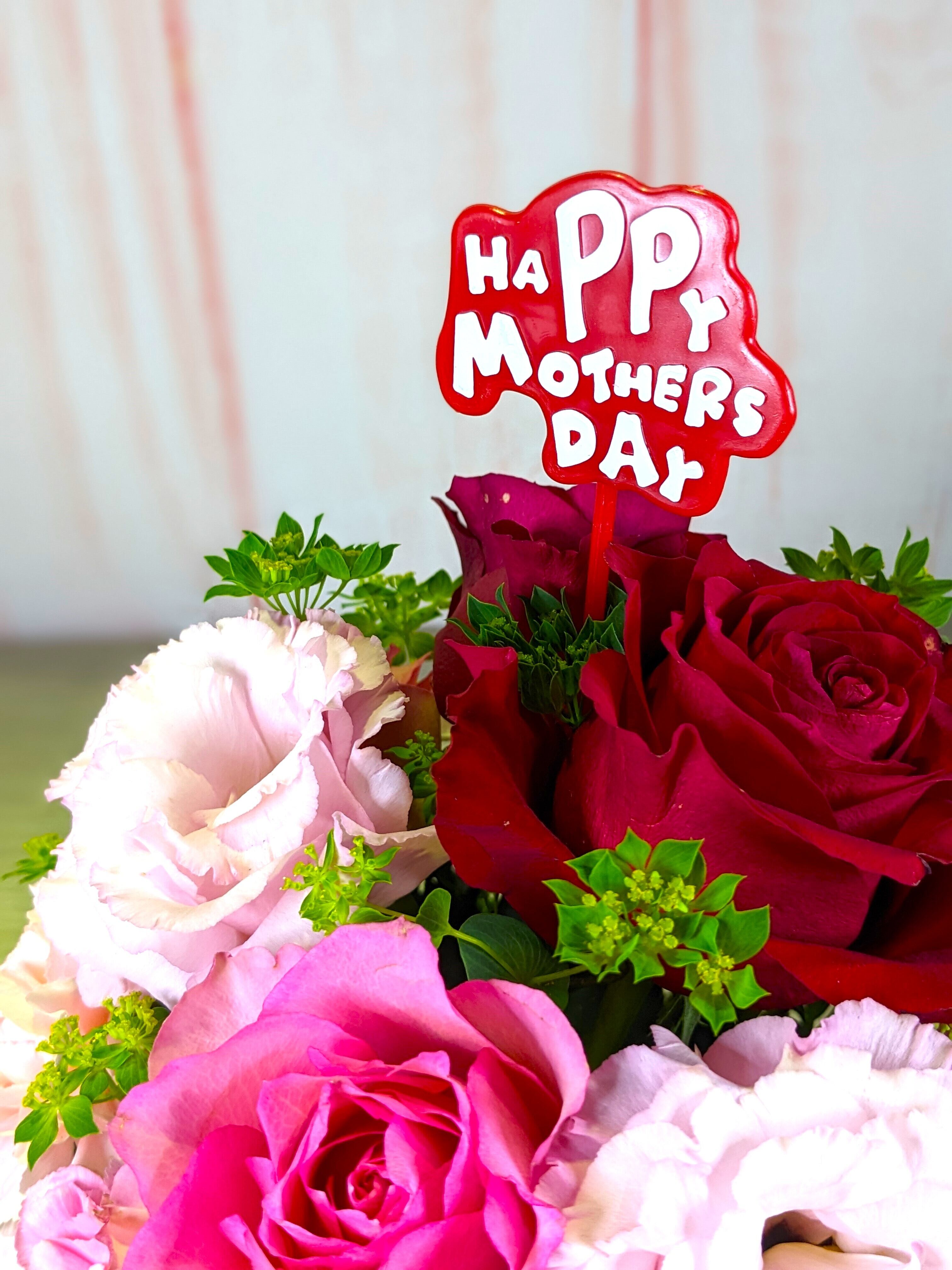 当店では、お客様の想いが込められた大切なプレゼントをお届けできるように、お花選びからアレンジメントまで丁寧に手作りしています。母の日にぴったりな贈り物をしたい方は、ぜひ当店のアレンジメントをお試しください。