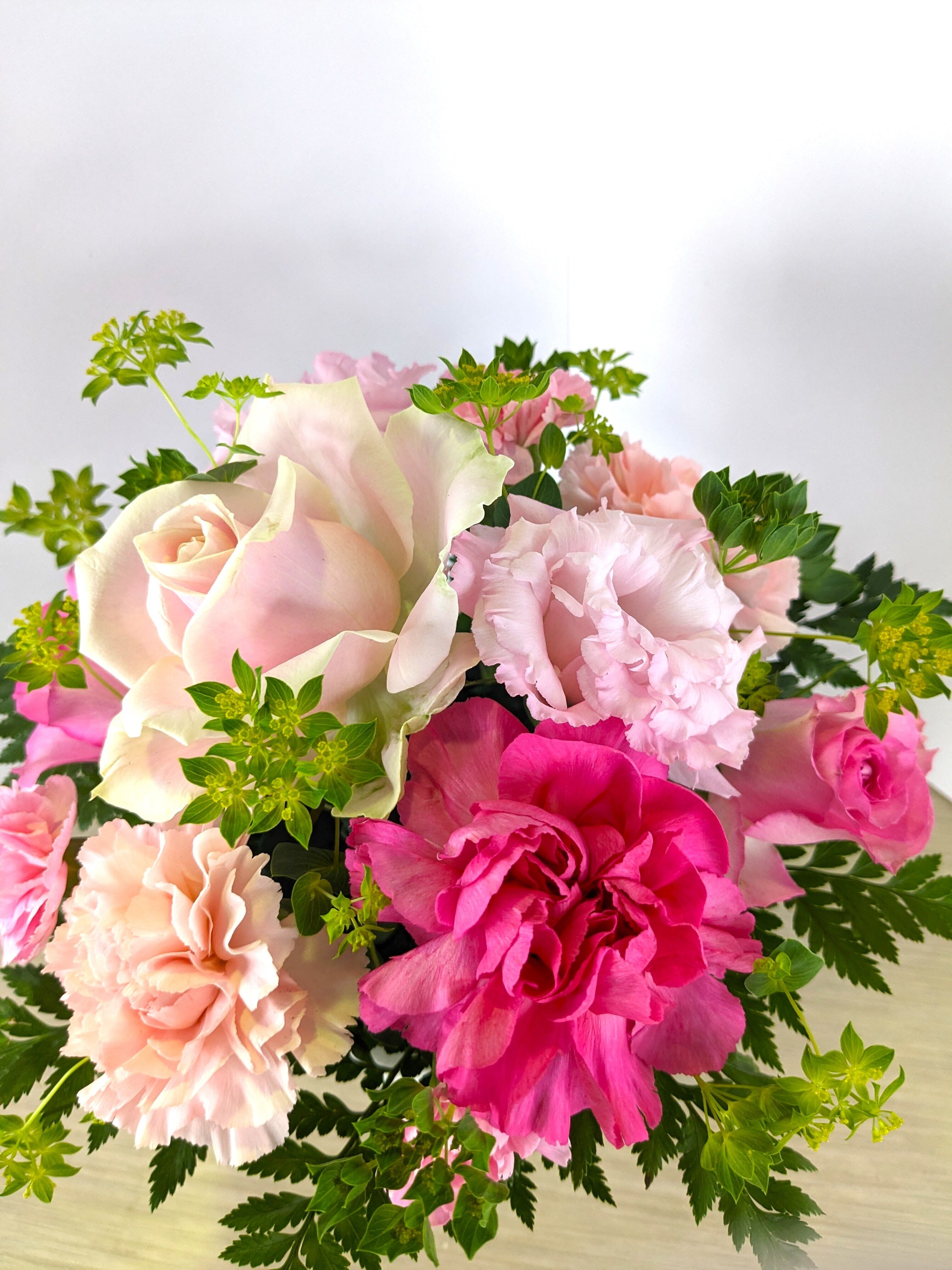 当店では、お客様の想いが込められた大切なプレゼントをお届けできるように、お花選びからアレンジメントまで丁寧に手作りしています。母の日にぴったりな贈り物をしたい方は、ぜひ当店のアレンジメントをお試しください。